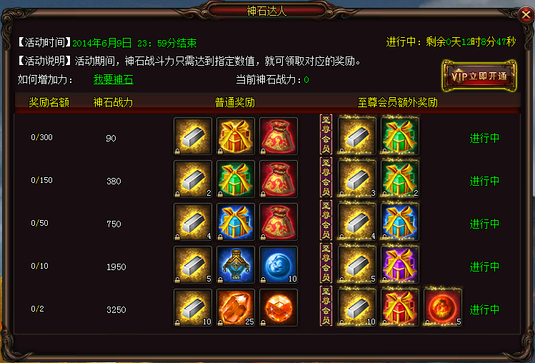 活动内容:在活动期间,神石战斗力只需达到指定数值,就可领取对应的奖励。名额有限先到先得!
