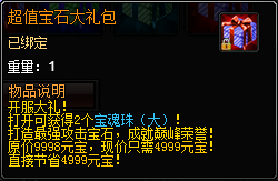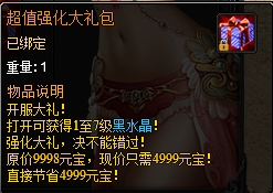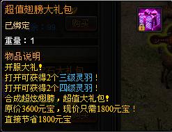 活动时间:开服前4天(开服第一、第二天出售其中三种礼包,开服第三、第四天出售另外三种礼包)