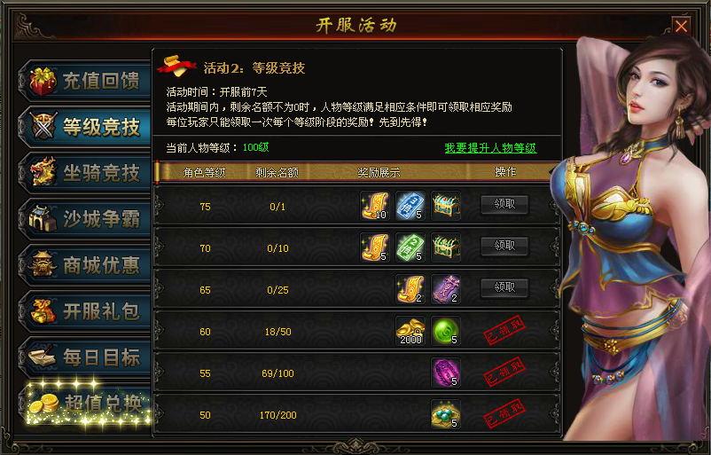 【活动内容】只要玩家达到特定的等级,就可以领取系统赠送的豪华大礼