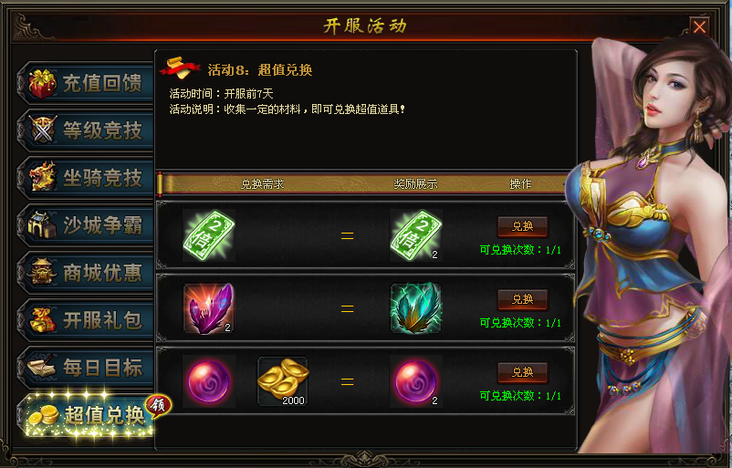 活动说明:活动期间,收集一定材料,即可兑换超值道具