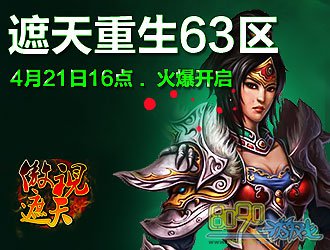 8090傲视遮天将于4月21日下午16:00开启双线重生63服,各路英雄请火速进驻,共同体验万人在线热血竞技的快感!