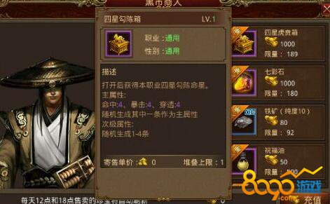 传奇世界手游四星勾陈箱多少钱?四星勾陈命星属性是什么?玩家可以在黑商处购买这个箱子,下面一起去了解一下吧。
