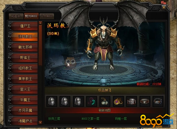 野外BOSS。沃码教王。刷新时间:15分钟。