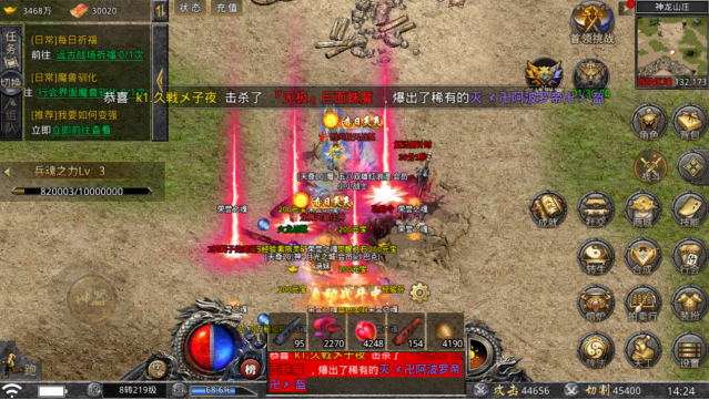 进入地图可以关注一下左上角的魔神数量,如果显示1或者2代表有魔神,可以刷,如果是0说明刚刚被人刷过,需要耐心等待刷新时间。打败会有海量的装备掉落,荣誉之魂,可以用来升级神装,还有海量元宝。