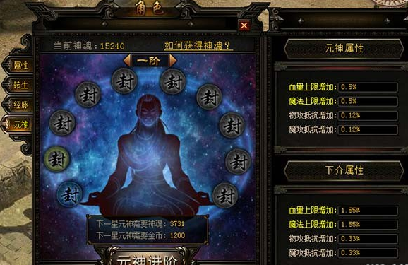2.神魂用来提供元神的进阶,元神星级越高获得的元神属性越高,带来的属性加成也就越优厚。