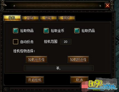 可以看到武神决辅助分为四个部分。分别为挂机、基础、技能和保护。