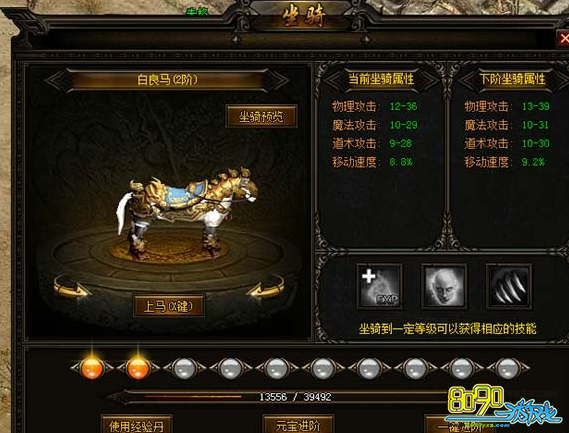 进阶之后坐骑属性变强,也能领悟新的技能。