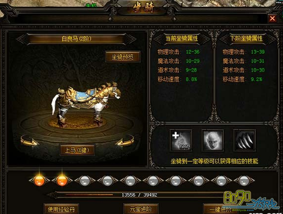 进阶之后坐骑属性变强,也能领悟新的技能。