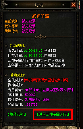 搜索"8090网页游戏"玩武神诀一定要玩一玩武神争霸系统,武神争霸如同狂欢般的无限制PK,打造最残酷的杀戮之战。相信一些新手玩家对于武神争霸系统还不是太清楚,下面就来给大家介绍武神争霸系统怎么玩。