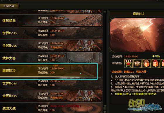 开服第3天或以上的服务器会在每天晚上19:30~20:00开启此活动,活动对象为跨服的所有玩家。