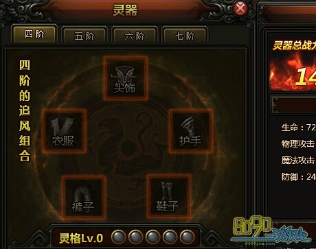 灵器中只能放入自己职业的至尊双属性装备,装备的属性星级决定灵器的激活等级。