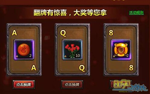 翻牌可以随机获得翻牌奖励,各式各样的道具都是有的哦,对于玩家们战力的提升还是很有帮助的哦。