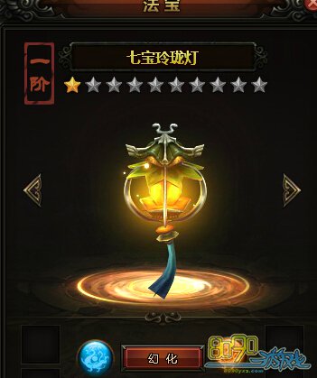 玩家达到120级后就可以开启法宝,点击人物角色信息面板的法宝,就可以进入了,法宝共有12阶,进阶后战力也会有很大的提升。