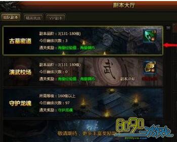 要刷副本获取经验的话,古墓密道和演武校场一定不要错过了,玩家们每天可以打3次,花点铜币右上角鼓舞,是可以提高血和伤害的哦。
