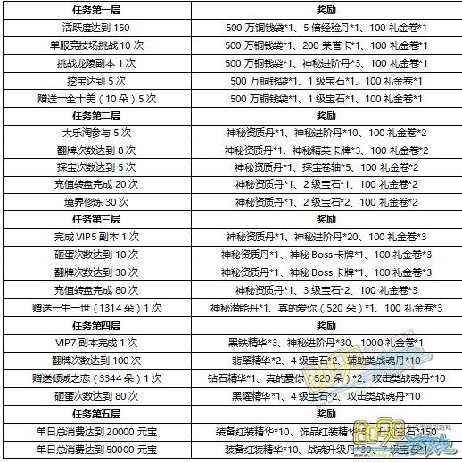 2、 按照低到高的顺序完成每项任务,没有重数限制,只有领奖时才有重数限制,只能领取当前重的任务奖励;