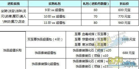 1、活动时间内可购买对应系统超值礼包,礼包开出的进阶丹只能用于对应阶数。