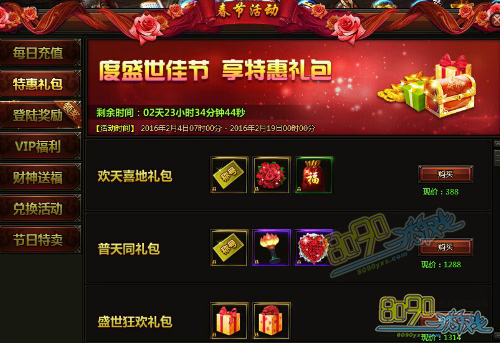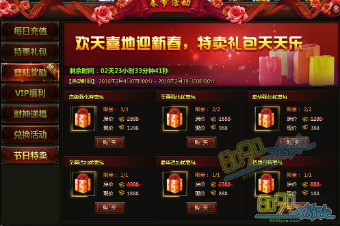 【活动内容】活动期间可购买丰厚折扣礼包,获得超值道具,期间不同的礼包会轮换。
