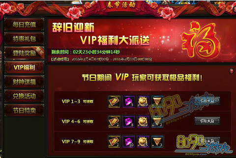 【活动内容】活动期间VIP玩家每日可领取极品福利。