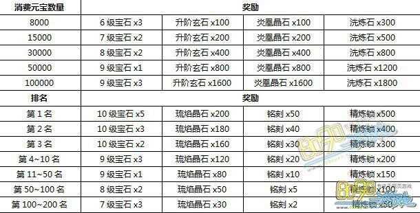 活动期间累计消费达到一定元宝可获得奖励,且玩家可根据个人消费排名获得对应奖励。