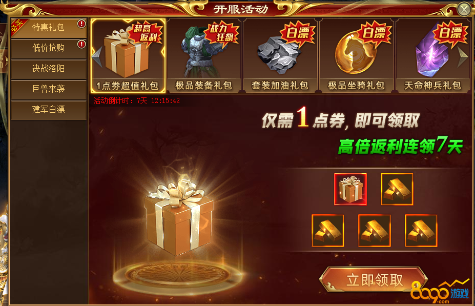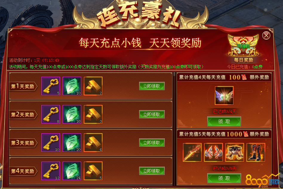 开服前7天开放,期间若充值满10000点券则活动永久存在