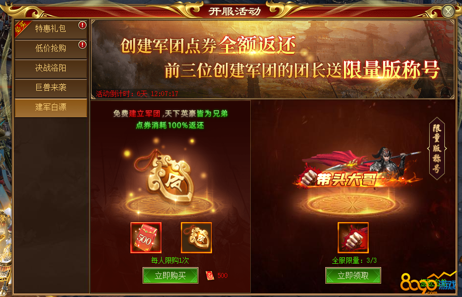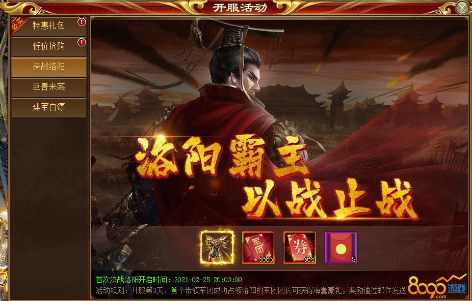开服第三天,首个带领军团成功占领洛阳的军团获得海量豪礼