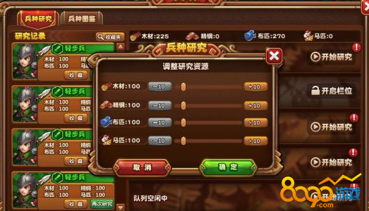 研究兵种需要玩家使用木材、精钢、布匹、马匹这些材料来进行研究。这些材料需要通过以下两种途径获得: