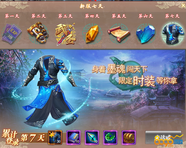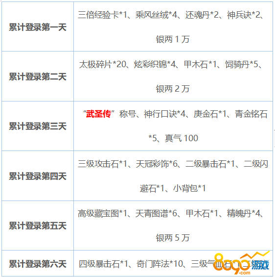 活动内容:新服七天累计登录送好礼