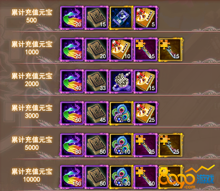分4档,达成对应等级可领取绑定元宝