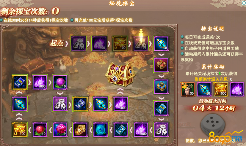 1.秘境探宝每日可通关一次