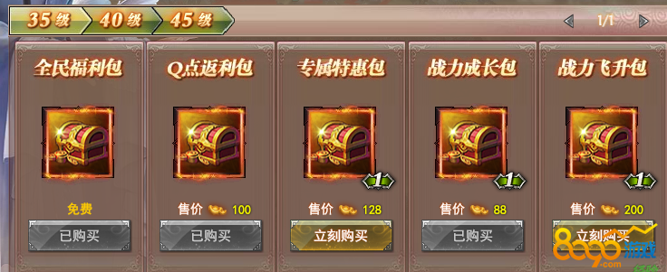 每5级可以解锁对应礼包,最高可购买到65级