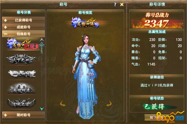 开启等级:玩家达到30级时,开启称号系统。