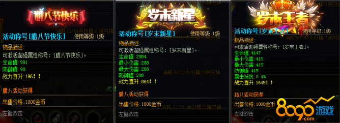 3. 腊八节快乐(称号)*1 消耗66份小份腊八粥(限量1次)