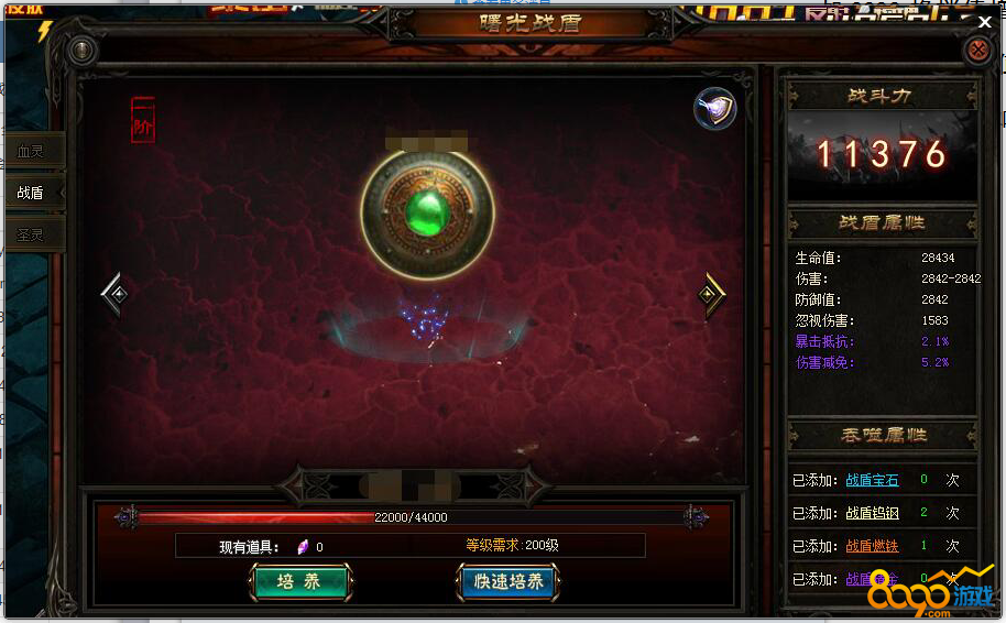 击杀BOSS也有几率掉落不过当然几率还是较小的,毕竟东西那么多。战盾还可用战盾之源增强属性,一次使用30个战盾之源可增加战盾属性1%,吞噬属性的道具有战盾宝石生命值增加150,但不增加战盾等级,只增加属性。战盾钨钢增加属性生命值2000以及防御值200战斗力增加400,战盾燃铁生命值增加5000,防御值增加2000,格挡值增加1000战斗力增加4300(单个)。战盾精金最强的战盾道具,增加生命值2万,防御值4千,格挡值1500,忽视伤害1500,战斗力增加11400。如果获得较多战盾精金,那估计没人打的动你了。