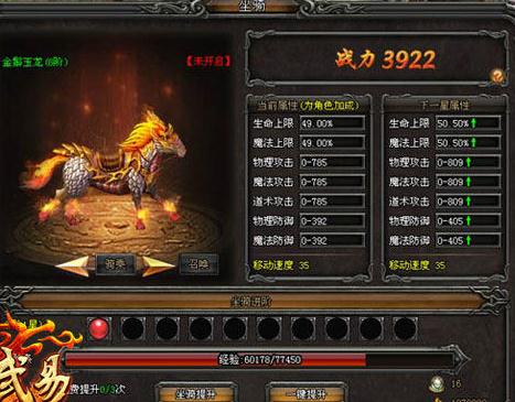 玩家可以通过坐骑提升系统来进行升级培养,用坐骑提升丹来进行培养,每提升一星,坐骑的属性也会随之强化提升的哦。