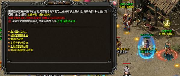 伏雷左使副本需要2转65级,人物可以辅助攻击,新副本是守护2亿经验,怪物从中间偷取经验并且成功消失经验就会少,不过玩家可以买保险经验。