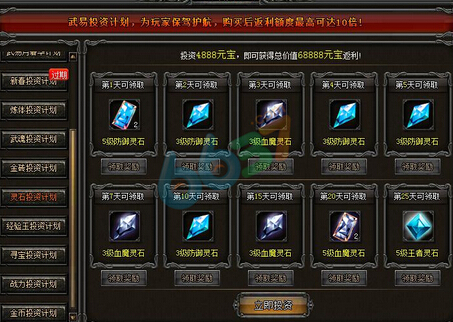 在灵石计划中,我们投资一笔元宝,在当天便可以得到基本等值的灵石奖励,而在接下来的25天内,我们还可以不断的领取灵石奖励,最终收益的总价值远远超过我们付出的那笔元宝。