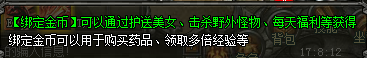 除了挖矿,还可以护送公主获得绑定金,点击传送石到达边界村,点开小地图(快捷键M)找到祭师,点击开始护送,然后人物会自己进行护送,也可以刷新护送等级,有机会护送到额度比较高经验比较多的九嚟公主。金币获得还可以在土城找到NPC诛魔将军,投入相应的装备获得相应的金币和绑定金币。