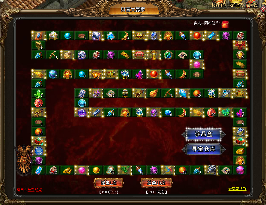 活动物品:宠·巨魔雪人*1, 幻宠之灵*10, 神宠魂魄*50, 极品金砖*1, 极品银砖*1