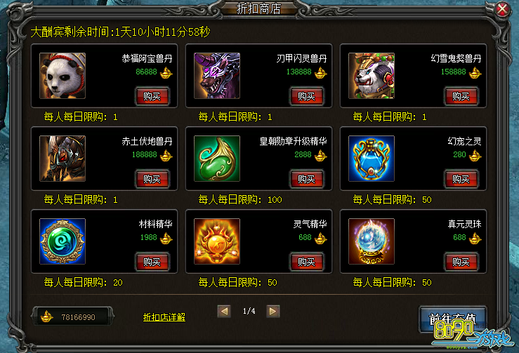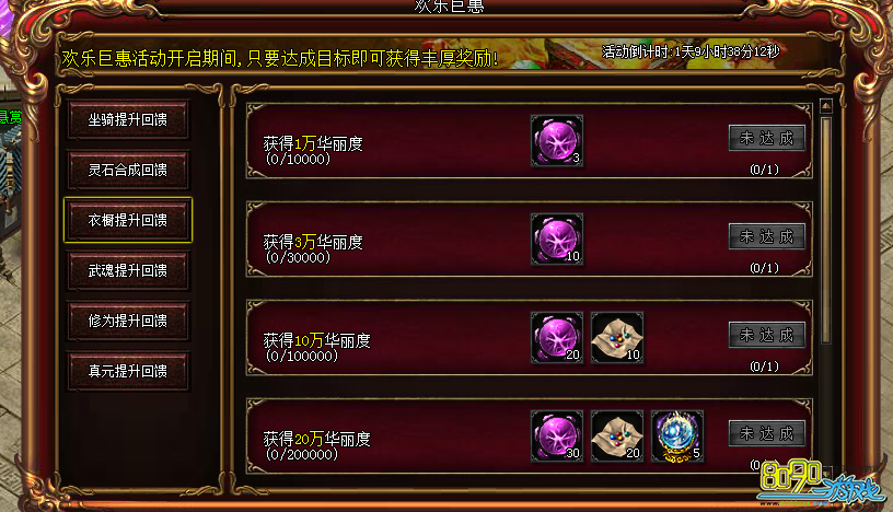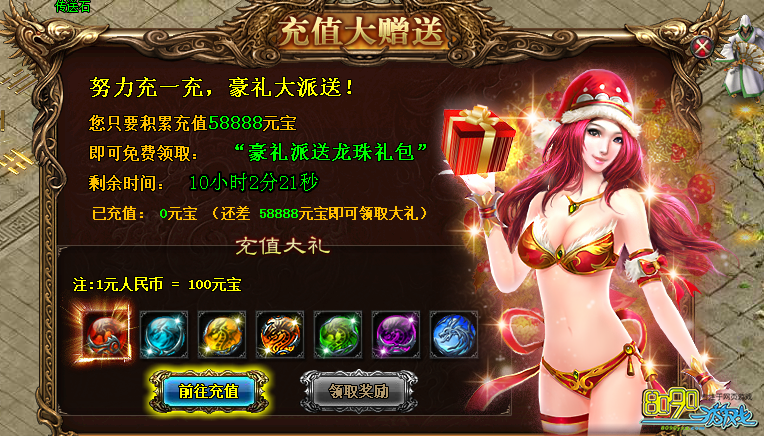 活动简介:活动期间,累计充值达元宝,即可兑换活动礼包。