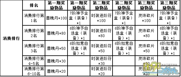 【活动内容】:活动期间,每日消费元宝前10名的玩家,即可获得丰厚奖励,每日消费排行奖励均不同!