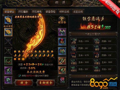 搜索"8090网页游戏"在8090我欲封天,要想战力提升,除了每天辛苦的打BOSS,还可以给装备强化哦!装备镀金就是一种属性提升的方式,话不多说,接下来,就一起来游戏里看看装备镀金的玩法!