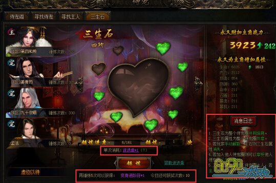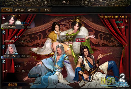 搜索"8090网页游戏"熟悉我大8090游戏我欲封天页游玩家对侍宠这个基情满满玩法肯定不陌生吧,只要点击主界面下方的“侍宠”图标就能打开侍宠界面,今天小妹就更为详细介绍该系统升级进阶玩法: