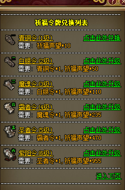 令牌的按钮就是我们声望的用途了。我们可以根据自己的声望兑换令牌。