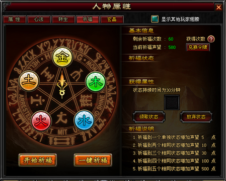 绑定商城:武尊游戏里的绑定商城只出售一个祈福令,需要1000绑定元宝,使用之后会增加1次祈福机会和10点祈福声望,看起来还算是挺划算的。获取祈福令牌的途径主要是前面两个,但这需要玩家们充值,对于非R玩家来说会有不小的压力。