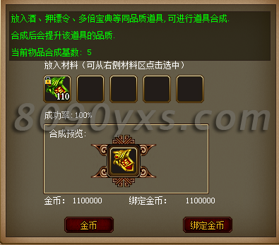 这也是熔炉系统中一个非常重要的作用,在游戏中经常会有各种低级的道具,这些道具通过打怪或者副本获得,而我们需要用这些道具来合成一些更高级的道具,就需要用到材料合成的功能了。只要有相应的材料,玩家只需要消耗一定的金币或者绑定金币即可进行材料合成。