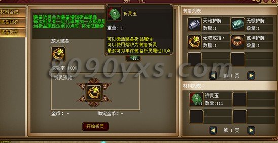 装备祈灵可增加装备自身属性,需在商城内购买祈灵玉,进行装备祈灵增加的属性是随即的,属性增加到封顶时,不可进行祈灵!