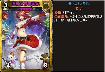 活动期间累积储值额度达到10000金币以上,奖励卡牌:圣诞女郎梅丽尔(传说)×1