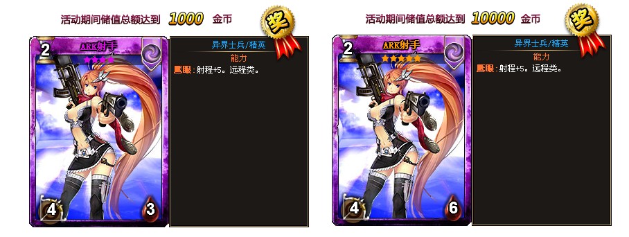 3、 累积储值的卡牌奖励将在储值后立即发送到邮箱中(如未及时收到邮件,重新登陆游戏即可);