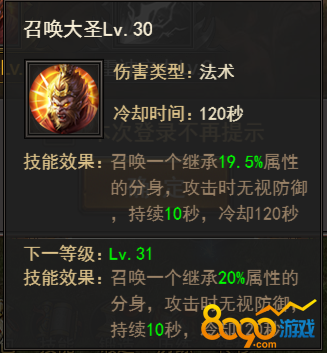 2、分身可在传奇大陆召唤,属性受到西游历练等级影响