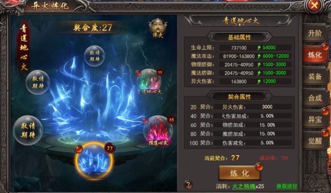 a. 消耗火之精魄对异火进行炼化,炼化成功会增加异火的契合度,契合度达到对应条件可解锁超强属性词条;